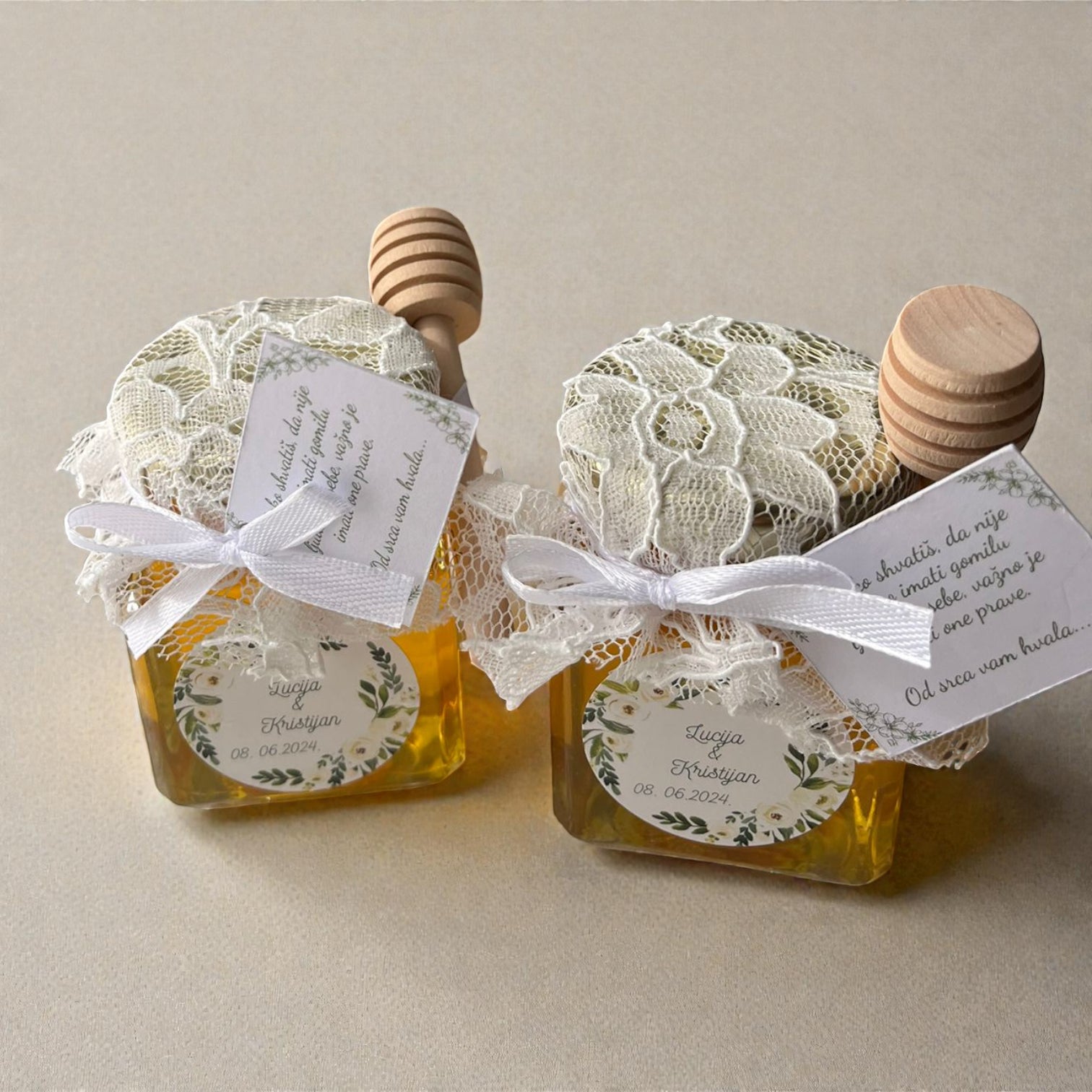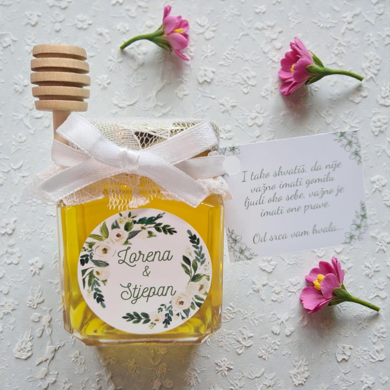 Vjenčani poklon zahvalnice od čipke s medom 106 ml